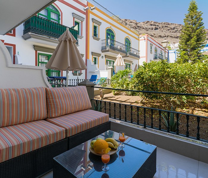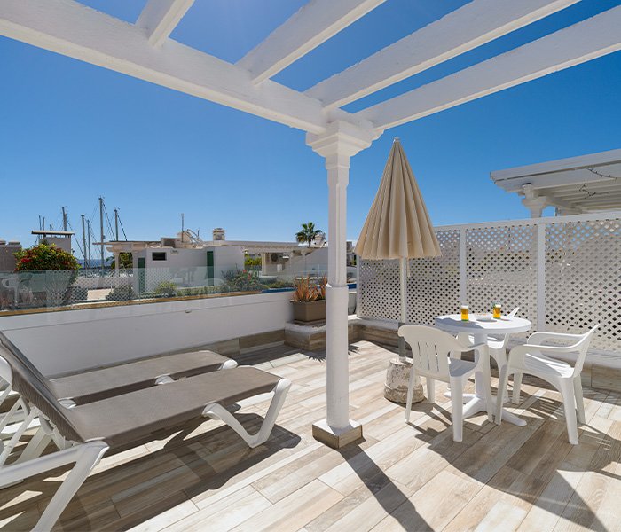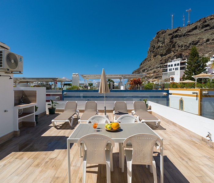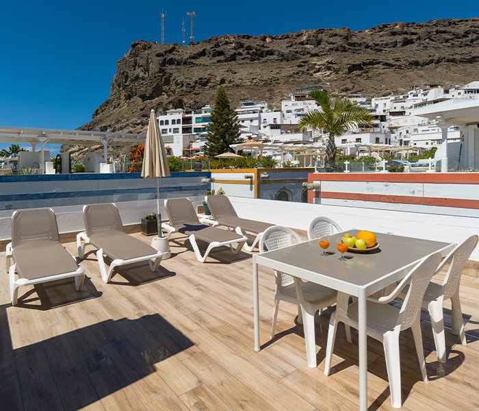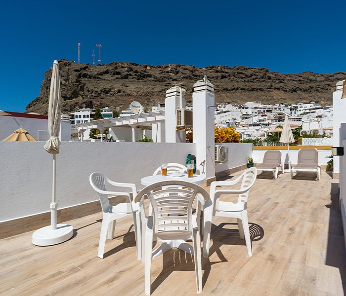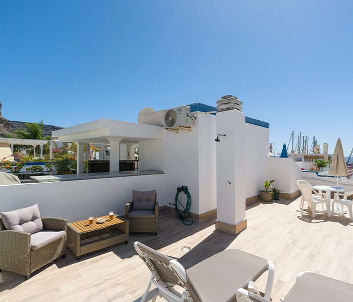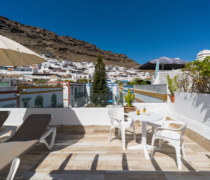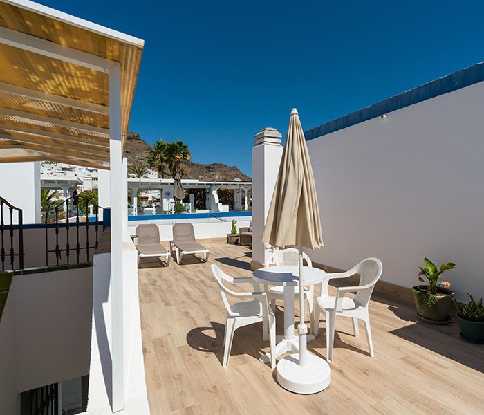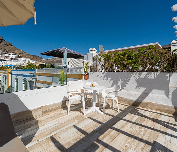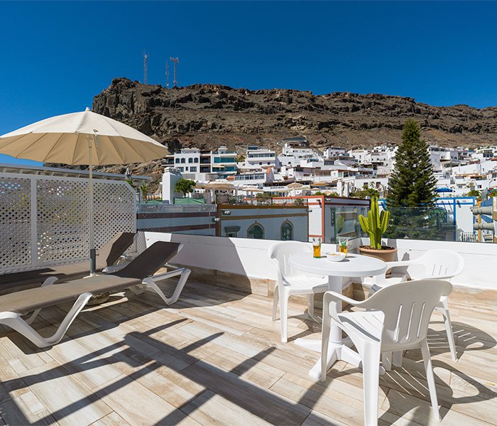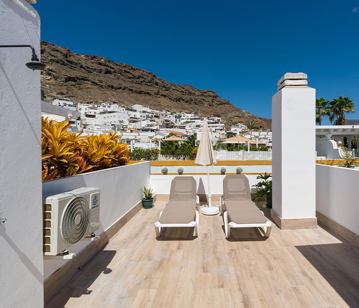 1-bedroom apartment with 1 sofa bed, air conditioning and free Wi-Fi. Enjoy a private roof terrace and a balcony overlooking Mogan’s beautiful gardens. The kitchen comes fully equipped for a comfortable and complete stay experience.