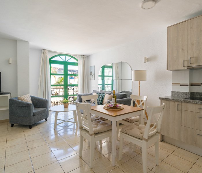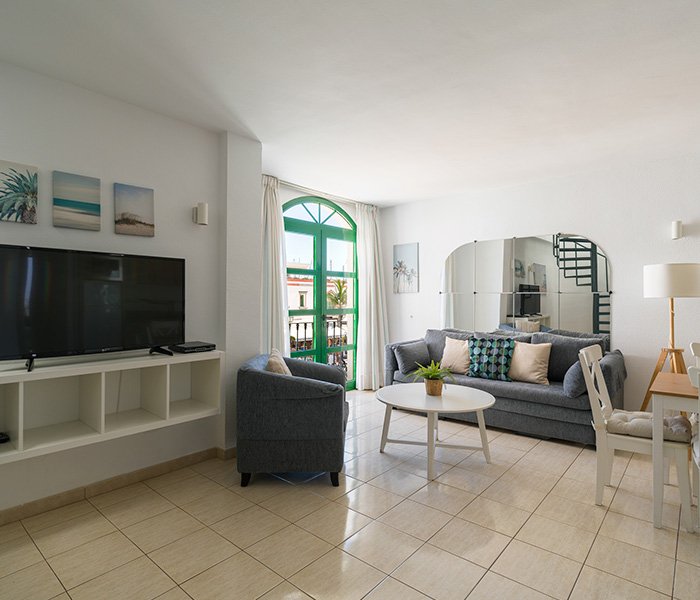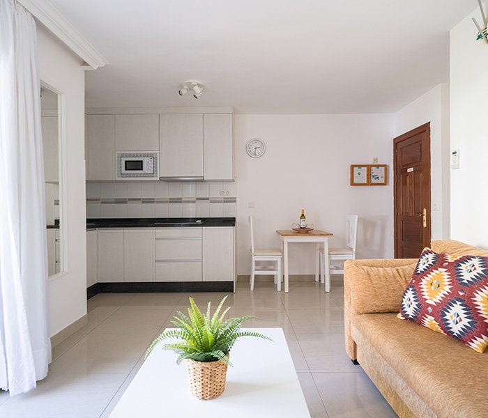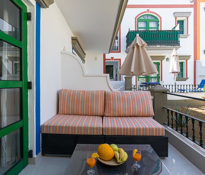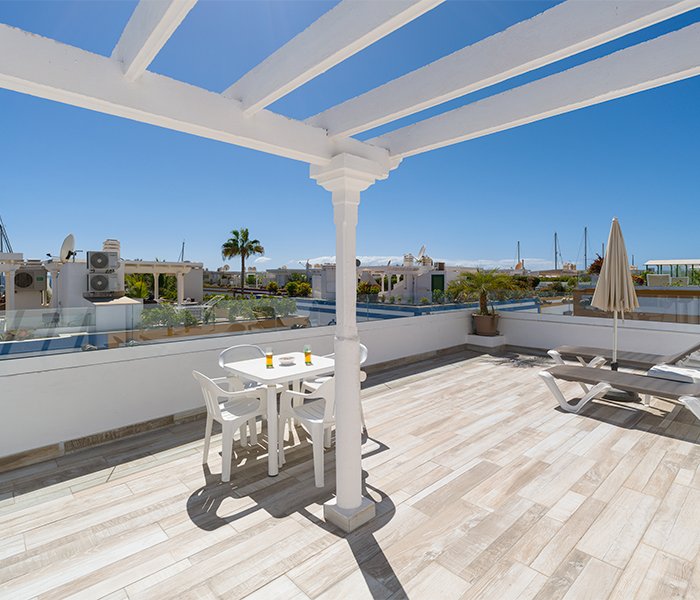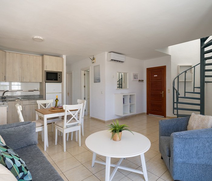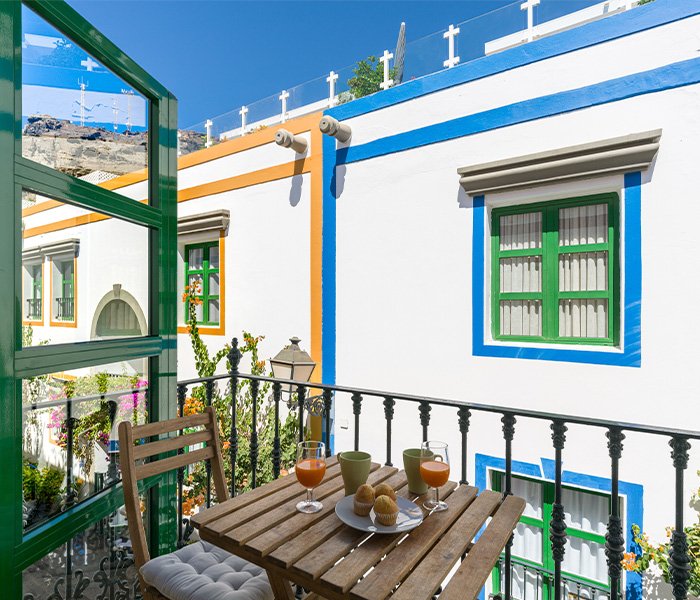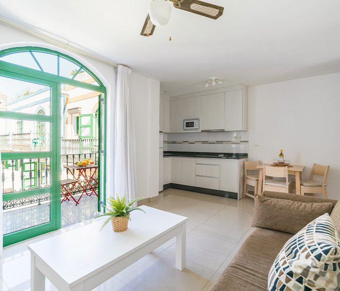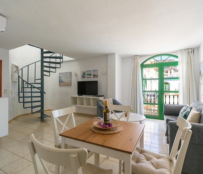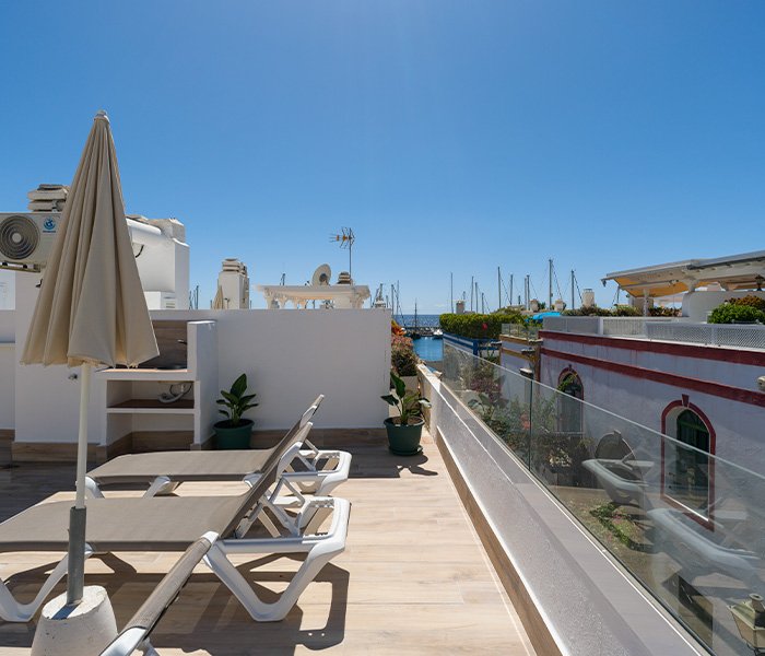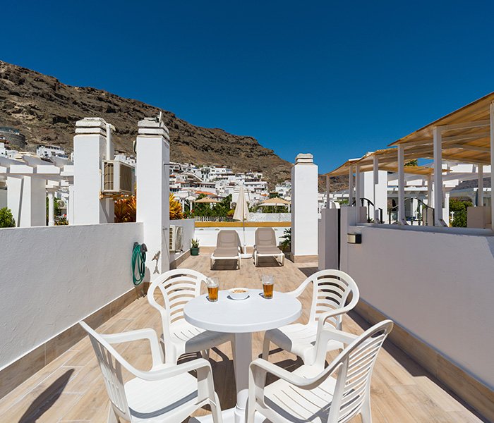 1-bedroom apartment with 1 sofa bed, air conditioning and free Wi-Fi. Enjoy a private roof terrace and a balcony overlooking Mogan’s beautiful gardens. The kitchen comes fully equipped for a comfortable and complete stay experience.