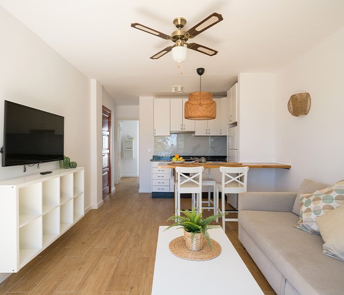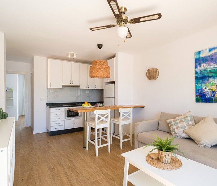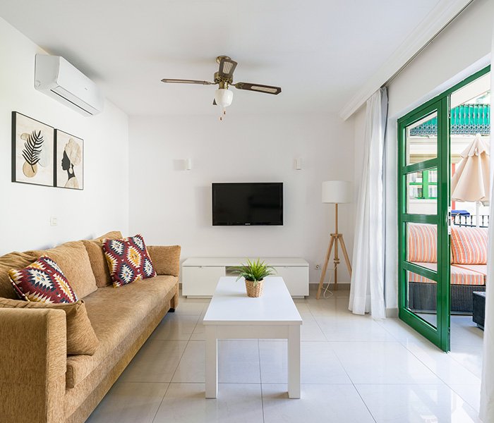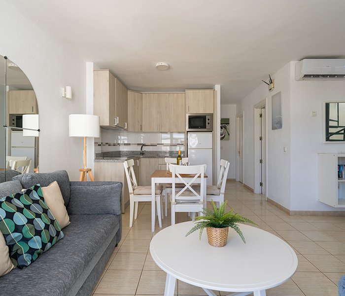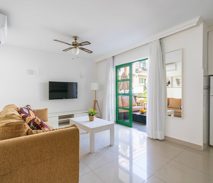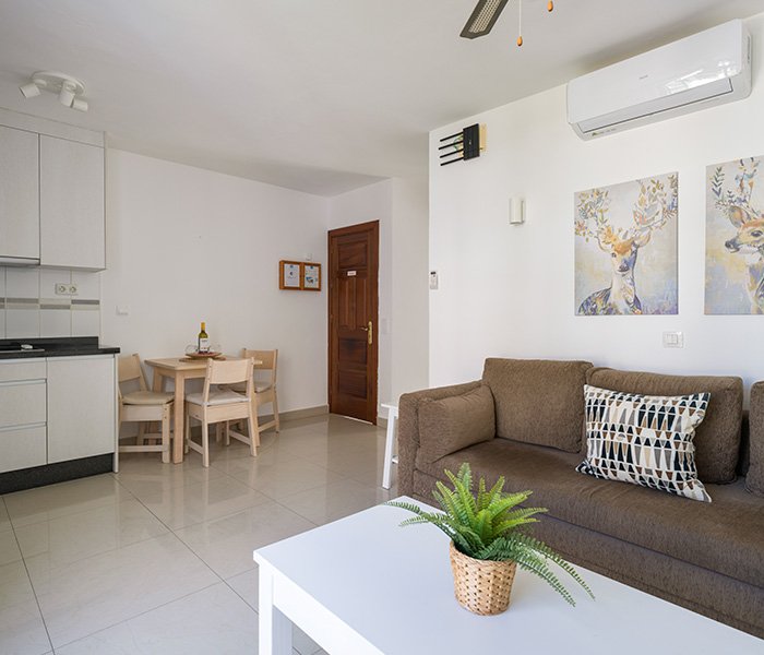 1-bedroom apartment with 1 sofa bed, air conditioning and free Wi-Fi. Enjoy a shared roof terrace and a balcony overlooking Mogan’s beautiful gardens. The kitchen comes fully equipped for a comfortable and complete stay experience.