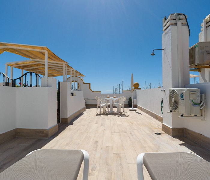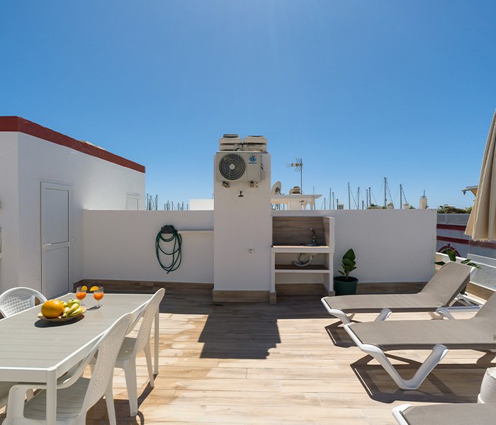 2-bedroom apartment with 1 sofa bed, air conditioning and free Wi-Fi. Enjoy a private roof terrace a balcony with a view of Mogan’s charming streets. The kitchen comes fully equipped for a comfortable and complete stay experience.